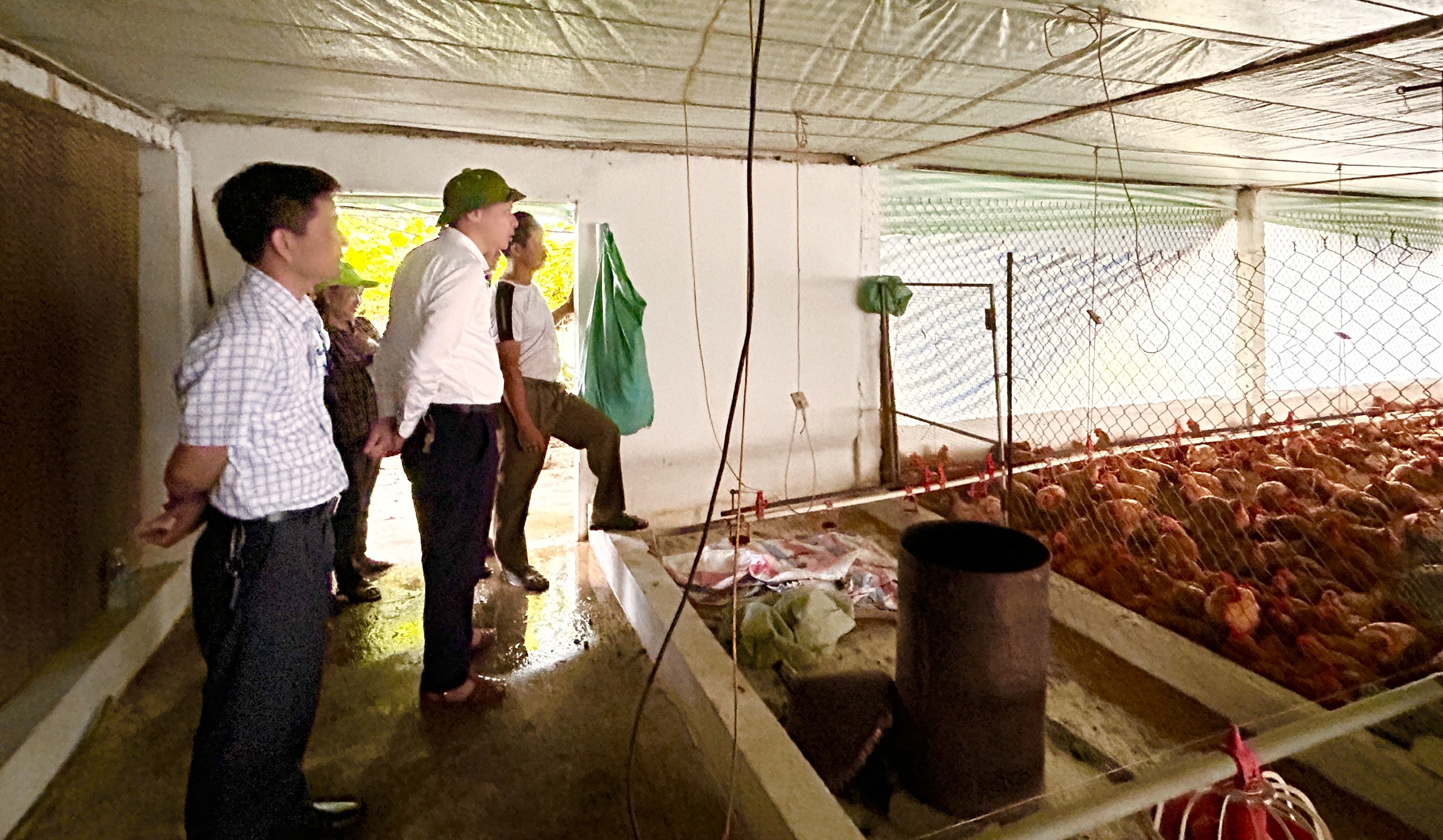 Tiếp đó, đoàn công tác đã đến thăm cơ sở chăn nuôi tại thôn Giang Khẩu – địa phương có nhiều mô hình trang trại và gia trại phát triển mạnh. Toàn xã hiện có hơn 50 hộ chăn nuôi quy mô lớn, trong đó nhiều hộ nuôi từ 8.000 đến 17.000 con gà mỗi lứa, góp phần nâng cao giá trị kinh tế nông nghiệp và tạo việc làm cho hàng chục lao động địa phương.