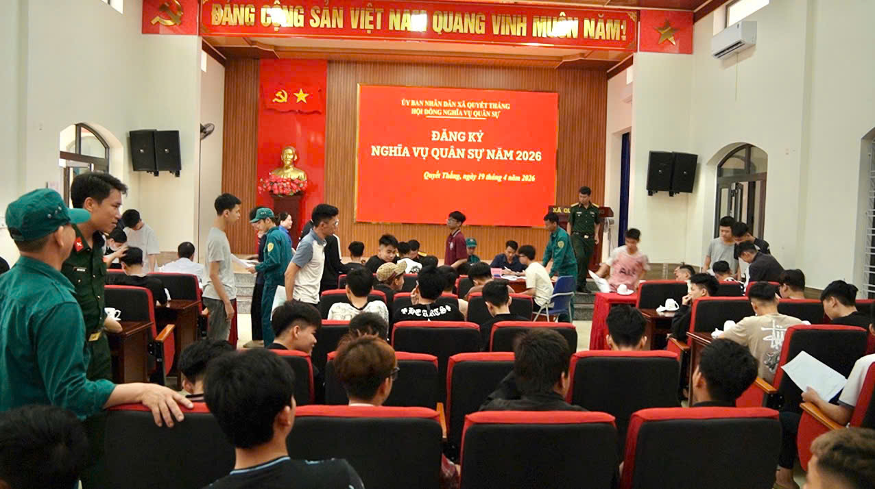 Sáng ngày 19/4/2026, tại hội trường UBND xã Quyết Thắng, Hội đồng Nghĩa vụ quân sự xã đã tổ chức đăng ký nghĩa vụ quân sự lần đầu cho nam công dân trong độ tuổi theo quy định.