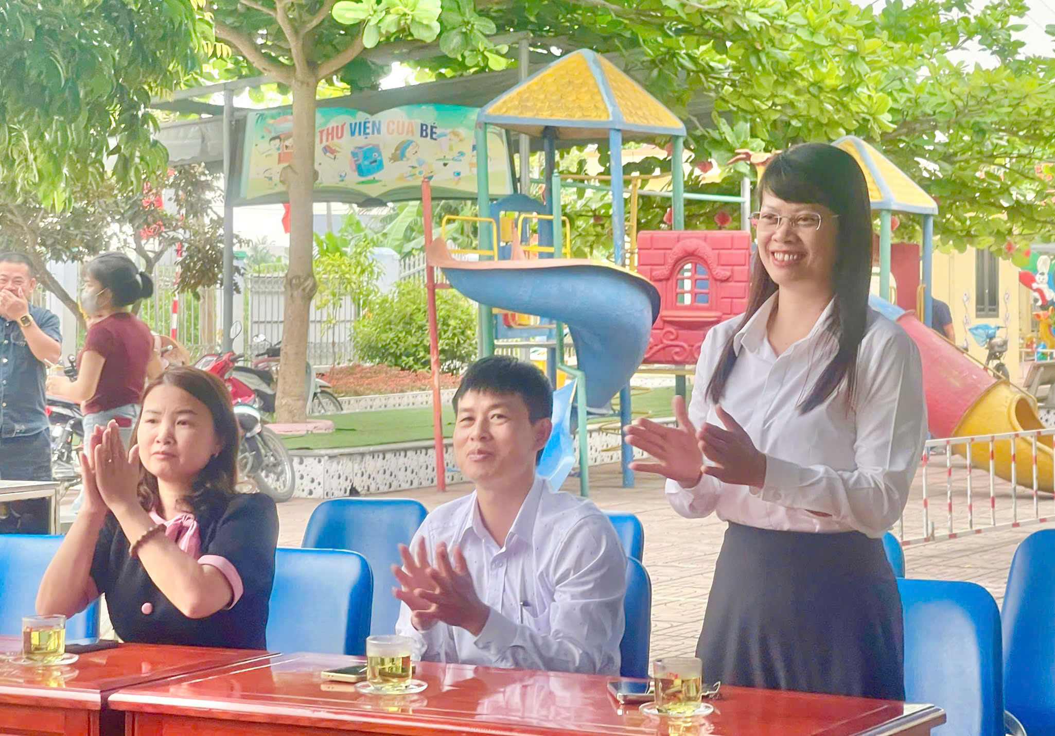 👥 Tới dự chương trình có đồng chí Mai Đàm Thanh Vân, Uỷ viên Ban Thường vụ Đảng uỷ, Phó Chủ tịch UBND xã Quyết Thắng; đồng chí Phạm Minh Thuận, Đảng uỷ viên, Trưởng phòng Văn hoá – Xã hội xã; cô giáo Trần Thị Kim Chi, Bí thư Chi bộ, Hiệu trưởng Trường Mầm non Tự Cường; đại diện Ban đại diện cha mẹ học sinh cùng đông đảo phụ huynh và các em học sinh nhà trường.