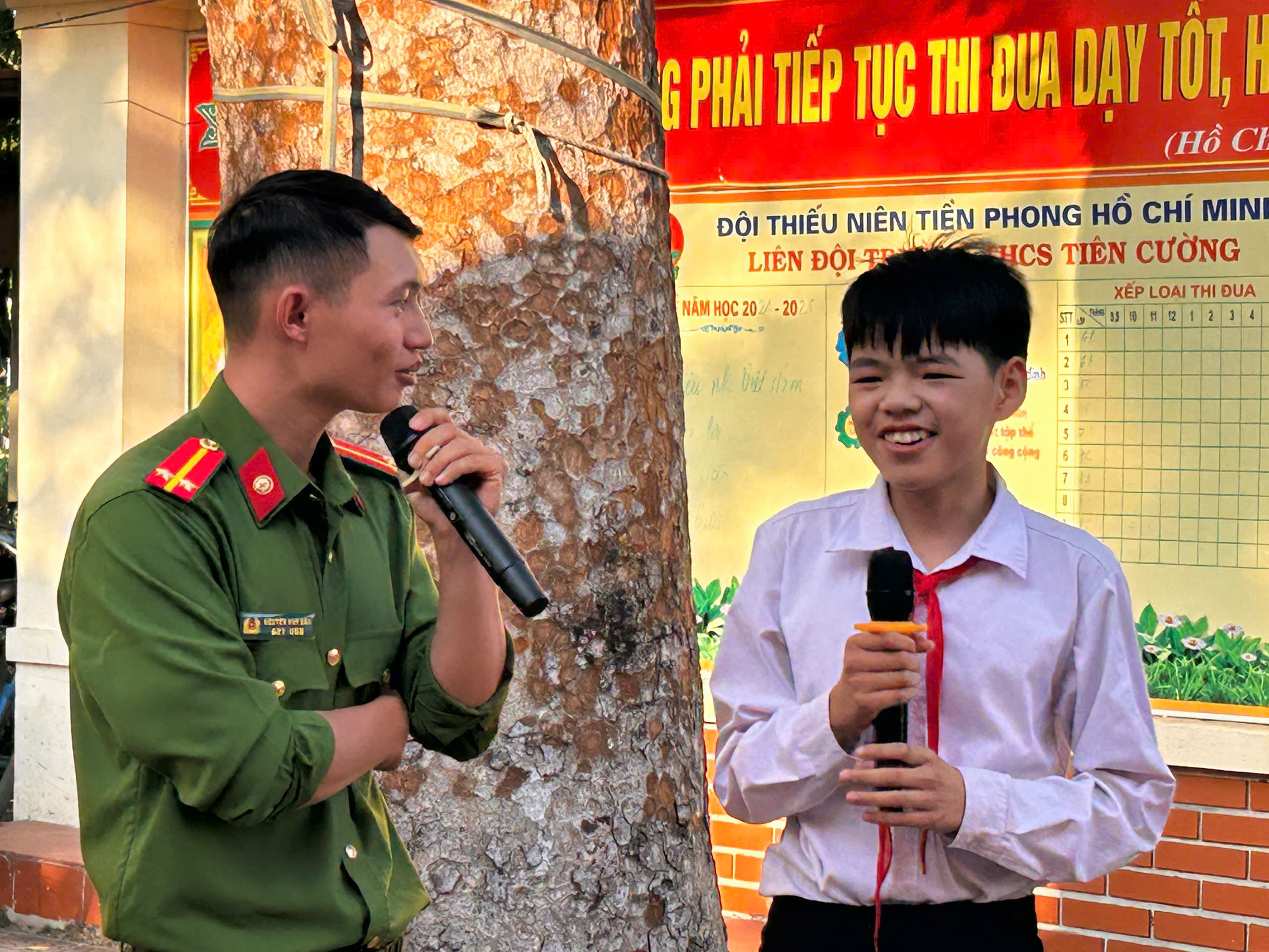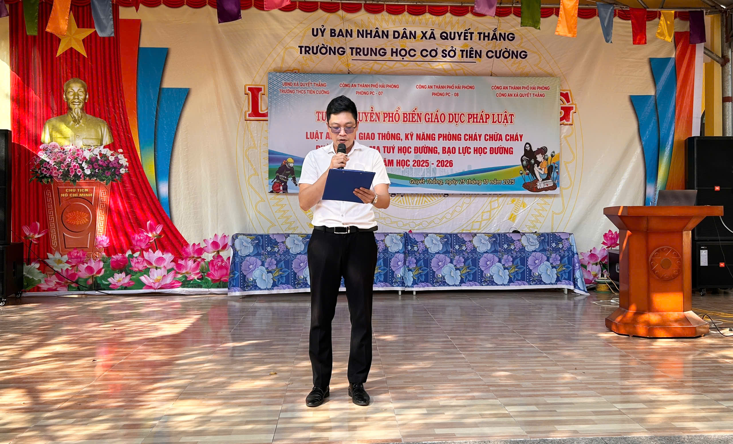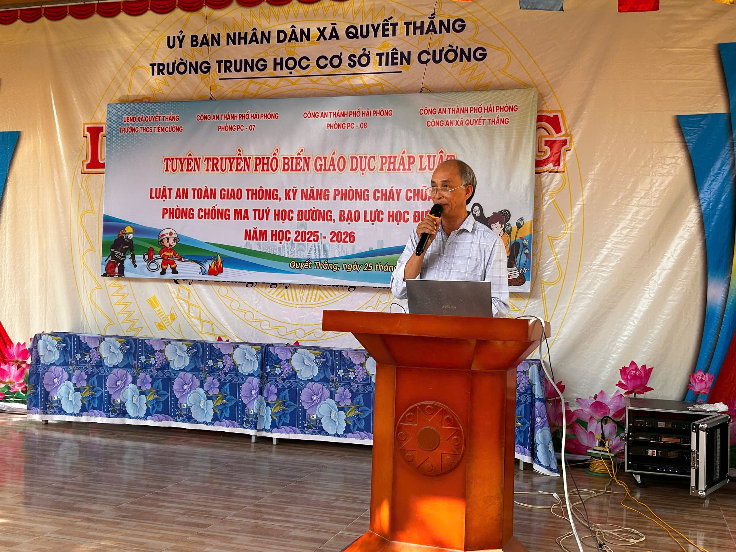 Tham dự có đồng chí Nguyễn Phùng Mạnh – đại diện lực lượng An toàn giao thông; đồng chí Lê Văn Thạo – đại diện lực lượng Phòng chống ma túy; đồng chí Nguyễn Anh Văn – lực lượng Phòng cháy chữa cháy – Cứu hộ cứu nạn; về phía địa phương có đồng chí Nguyễn Hữu Thắng, Phó Trưởng Công an xã Quyết Thắng; cùng đại diện Chi bộ, Ban Giám hiệu, các thầy cô giáo và hơn 440 em học sinh Trường THCS Tiên Cường.