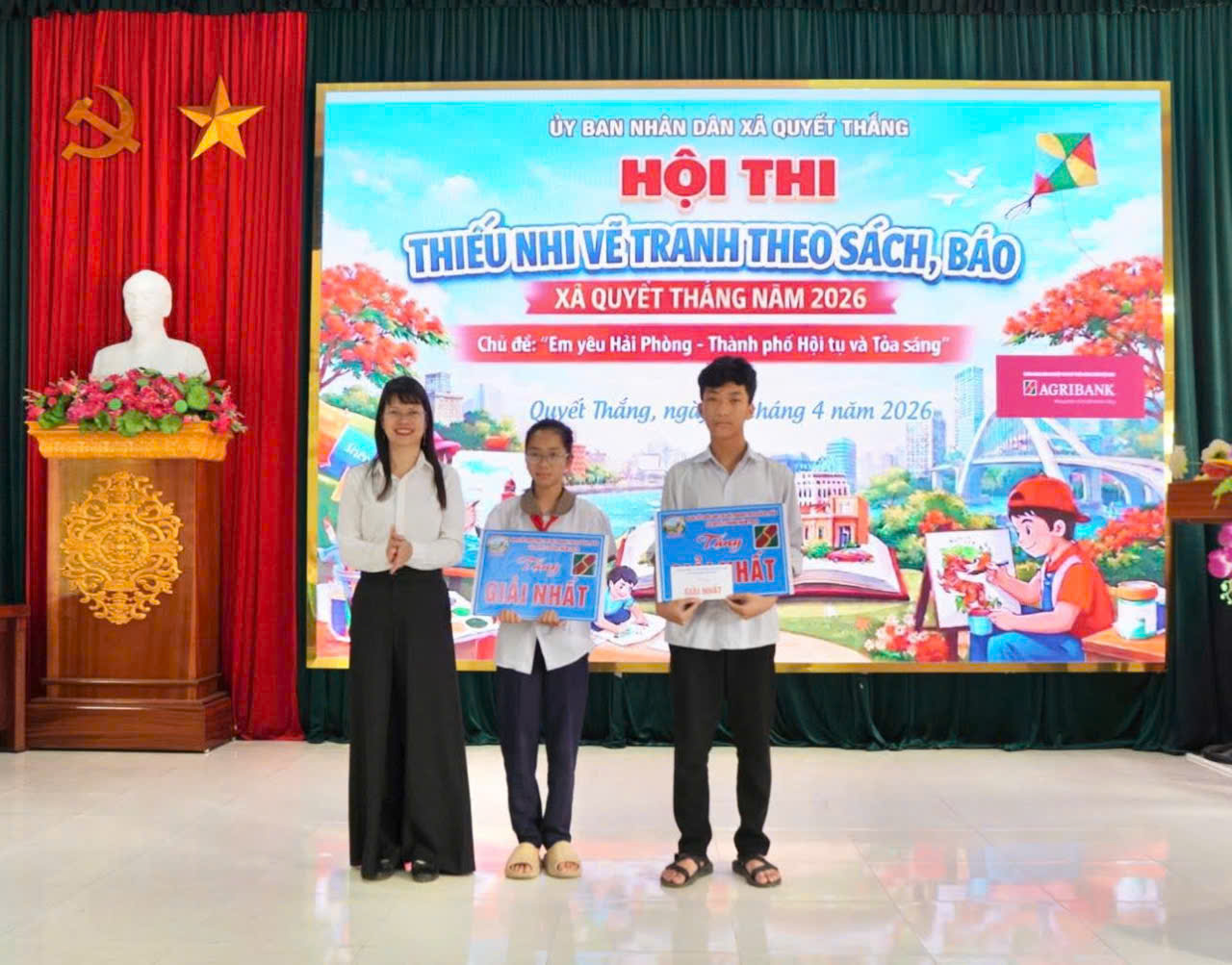 💚 Hội thi năm nay nhận được sự quan tâm, đồng hành của Ngân hàng Nông nghiệp và Phát triển Nông thôn Việt Nam (Agribank) – Chi nhánh Đông Hải Phòng. Sự hỗ trợ của đơn vị đã góp phần quan trọng vào thành công của hội thi, đồng thời tạo nguồn động viên, khích lệ các em học sinh tích cực tham gia.