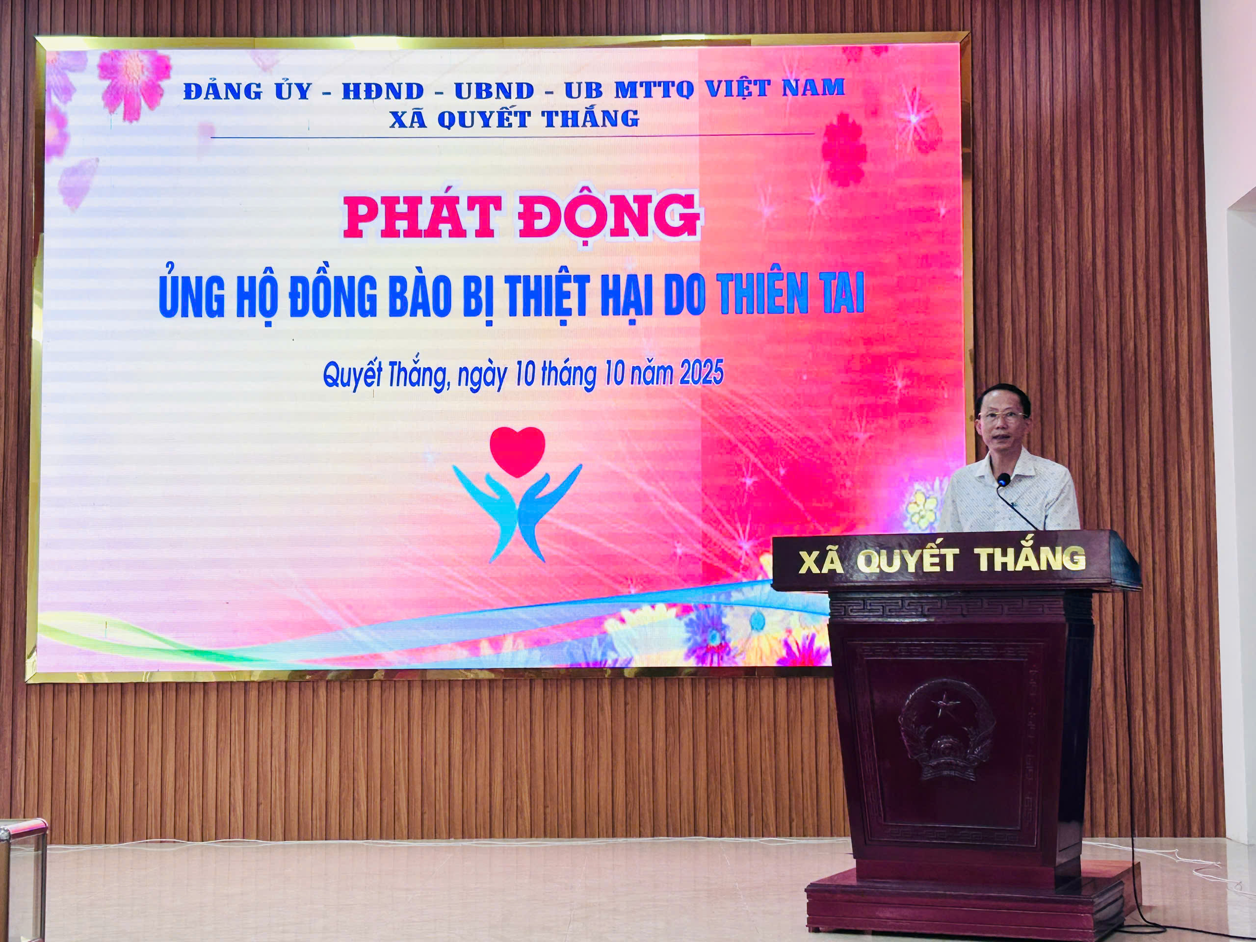 Ngày 10/10/2025, tại Nhà văn hoá xã Quyết Thắng, Đảng ủy, HĐND, UBND và Ủy ban MTTQ Việt Nam xã Quyết Thắng tổ chức Lễ phát động ủng hộ đồng bào bị thiệt hại do thiên tai.