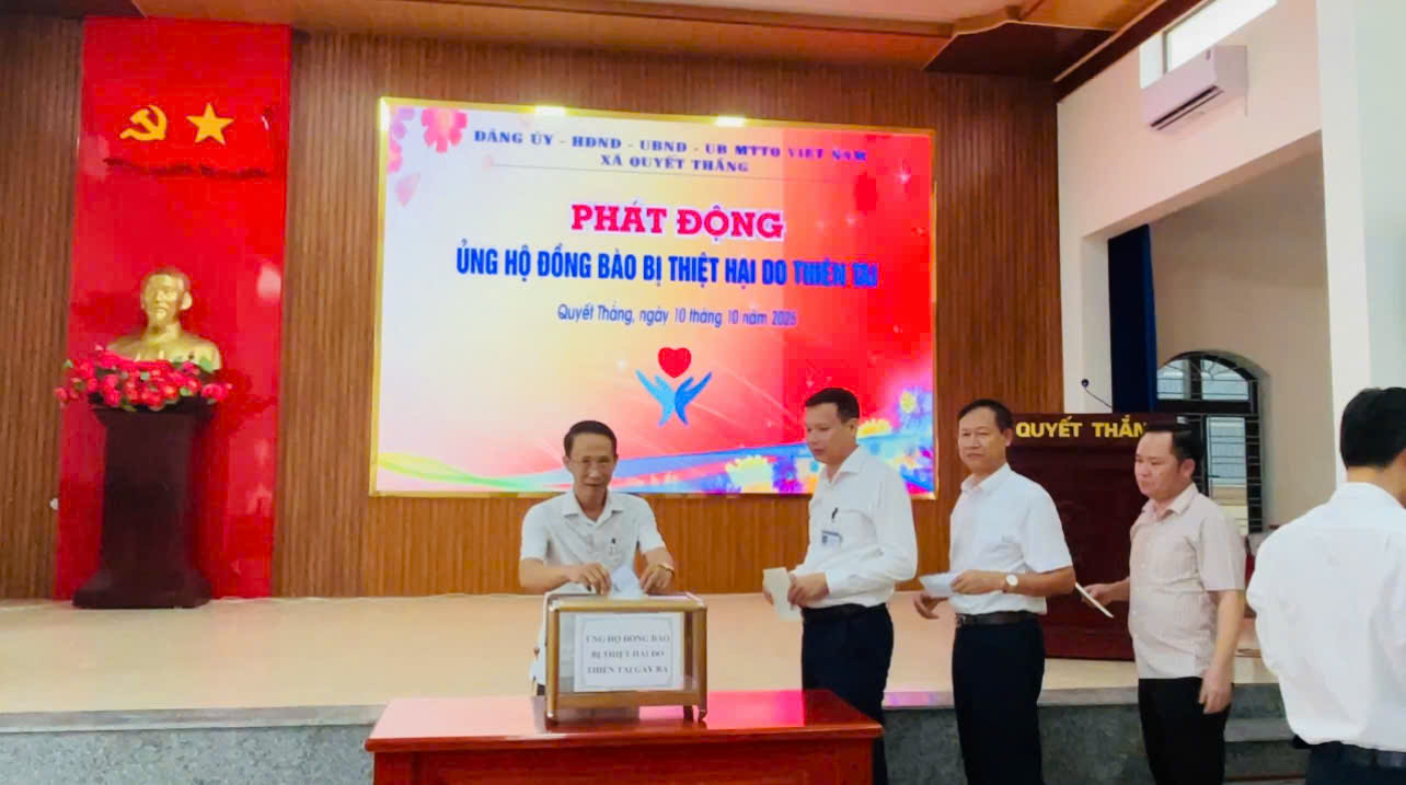 Ngay sau lễ phát động, các đại biểu, cán bộ và nhân dân xã Quyết Thắng đã tích cực quyên góp ủng hộ, thể hiện tinh thần đoàn kết, tương thân tương ái, lan tỏa thông điệp “Lá lành đùm lá rách – Cùng nhau vượt qua thiên tai.”